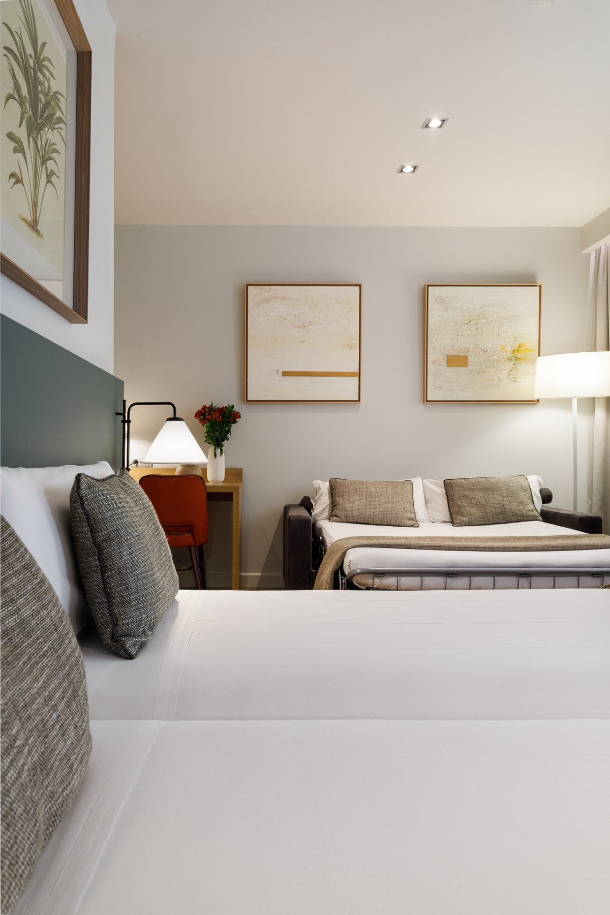 Our family rooms can accommodate up to 4 guests (two adults and two children under 12) with two single beds or a double bed, and a 135 cm double sofa bed. Spacious and comfortable, they are ideal for enjoying a stay in the center of Barcelona with the whole family.
